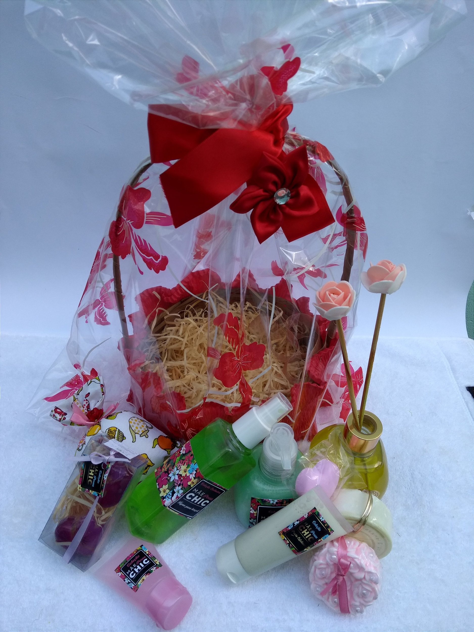 Cesta de vime media decorada contendo 12 produtos mhz aromas